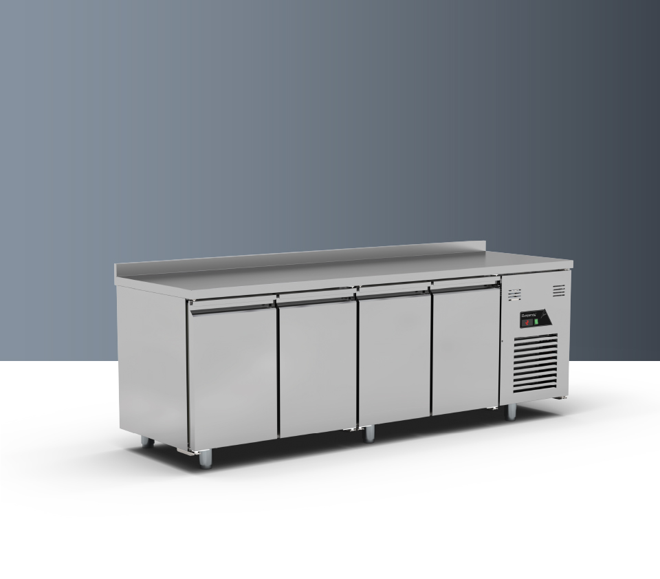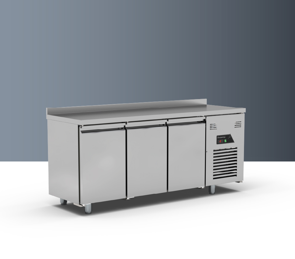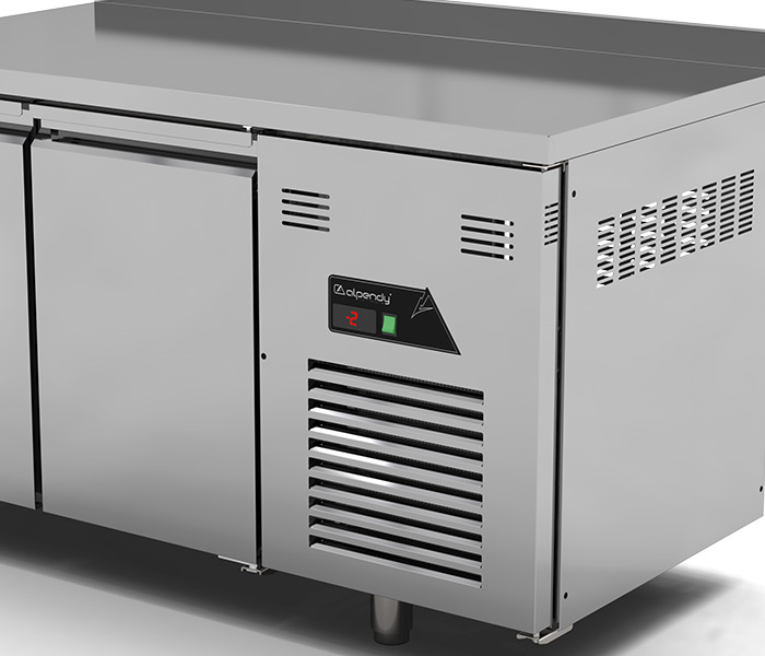 Dieses Modell hat die Maße 140x70x135 cm und ein Nettofassungsvermögen von 260 Litern. Die Arbeitsfläche besteht aus Edelstahl. Der Energieverbrauch liegt bei 0,22 kW.