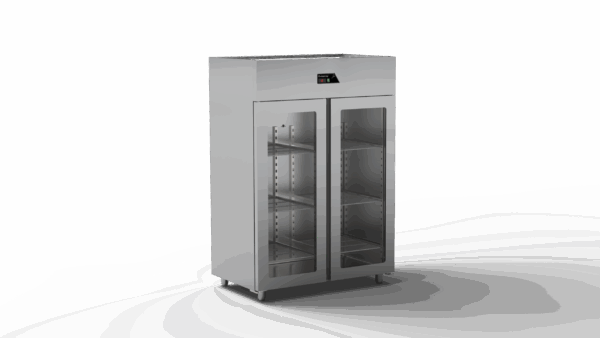 GR-1602-GL-PROF ist ein Kühlschrank mit Glastüren und einer Kapazität von 1400 Litern. Maße: 140 × 84 × 206 cm. Er arbeitet im Temperaturbereich von –2°C bis +8°C, besitzt eine Isolationsstärke von 80 mm, verwendet das Kältemittel R290 und hat einen Stromverbrauch von 0,62 kW.